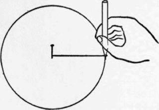 Comprobar esto, hasta cierto grado de aproximación, no es difícil, hágalo y se convencerá. Simplemente trace en una hoja de papel (con mucho cuidado) un círculo de cierto radio, usando el método del cordel anudado para formar un lazo fijo, el lápiz y el clavito (figura abajo).